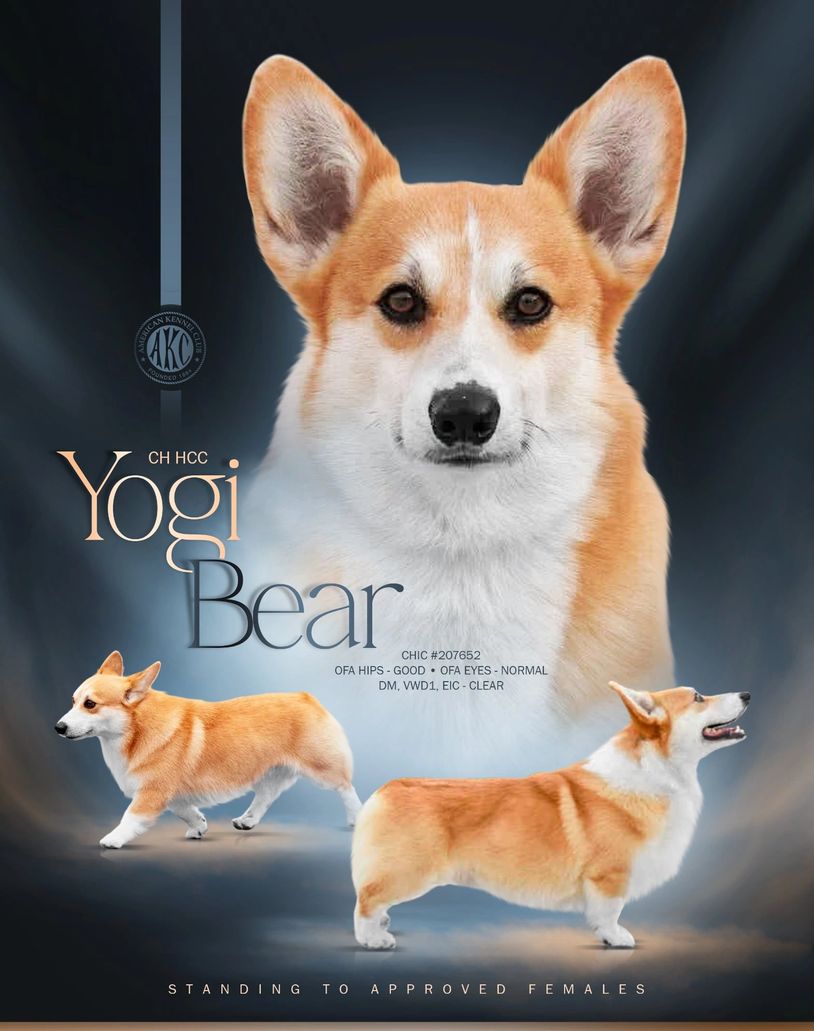CH HCC Yogi Bear was added to our program in 2024. He is the sire to Jan’s summer 2024 litter. We were really happy with the puppies they produced so we couldn’t help ourselves when we found out he was available. He has many Champions in his lines along with Honeyfox and Excalibur lines. He was sent with a professional handler in 2025 and received his AKC Championship! We are very proud of him!